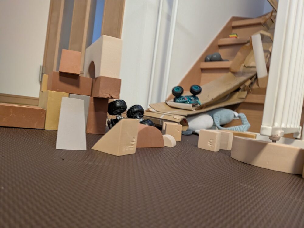 この前、息子が作った街の中をモンスタートラックで走らせて一緒に遊んでいたら、